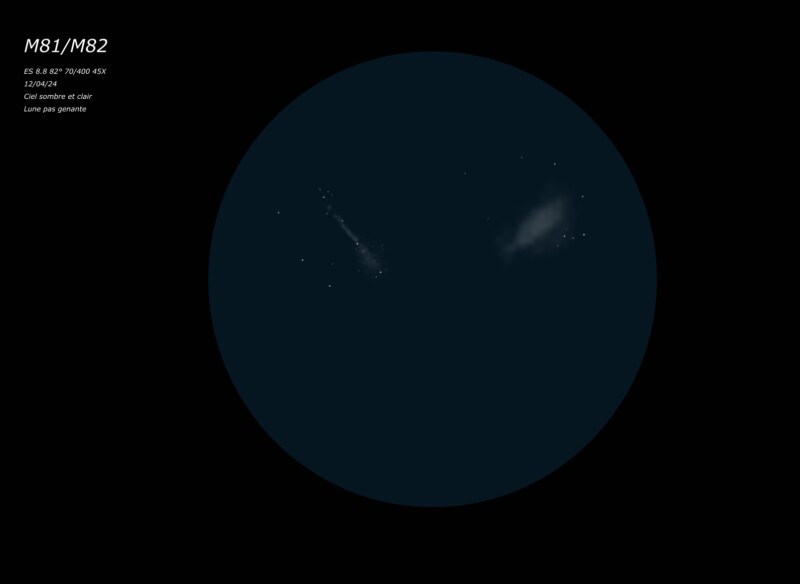 - Galaxies : plus délicates depuis la ville, mais certaines comme M31 ou M81/M82 restent accessibles. Le défi est de rendre l’aspect diffus, avec un noyau plus marqué.