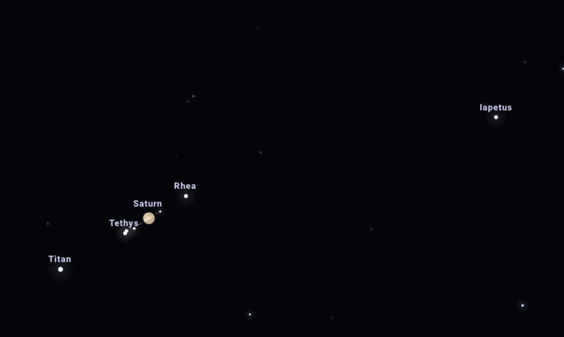 - Rhéa, Téthys, Dioné : visibles avec 100 mm et plus.